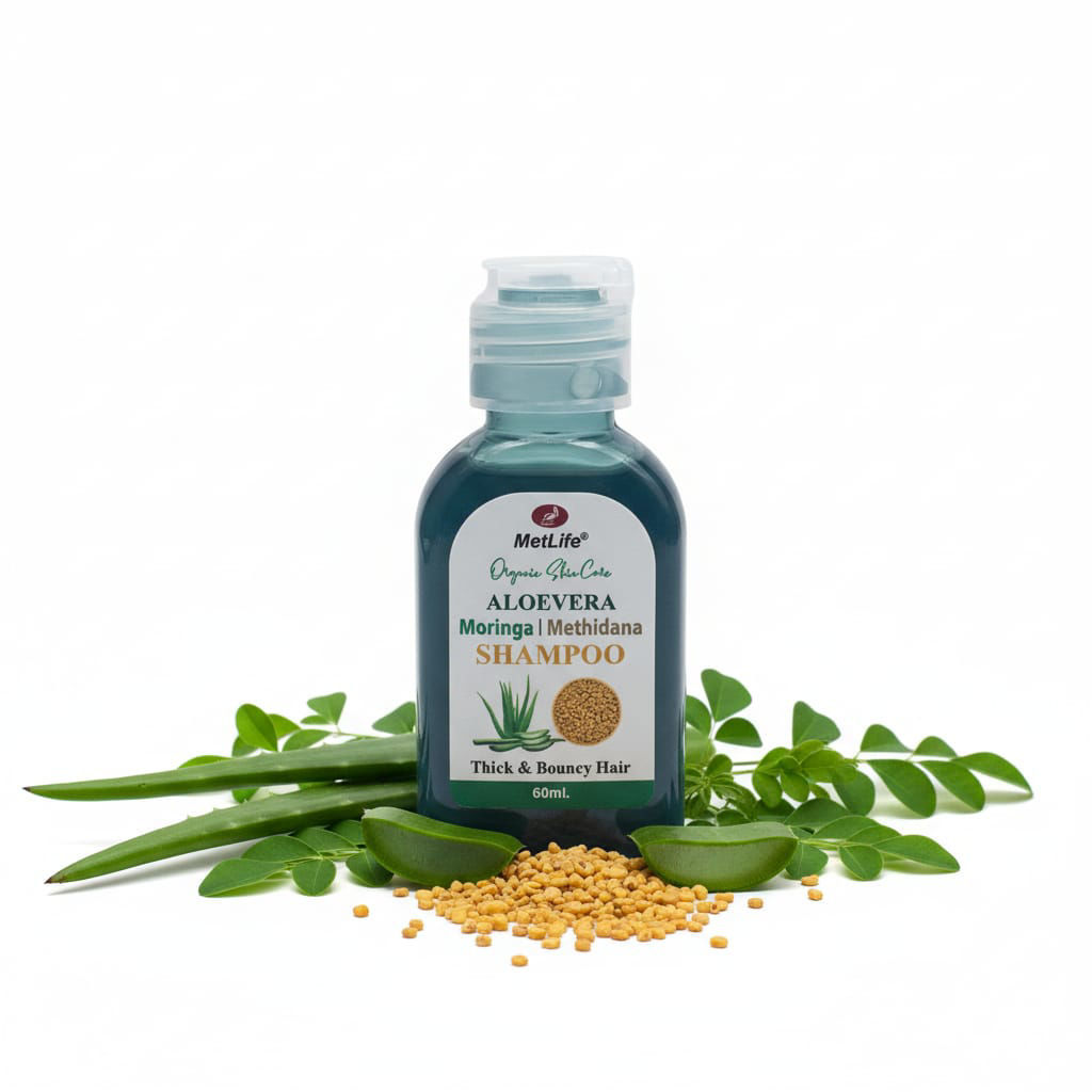 Revitalize your hair naturally with MetLife Aloe Vera, Moringa & Methi Dana Shampoo — a powerful blend of three time-tested herbal ingredients known for their nourishing and restorative properties.
